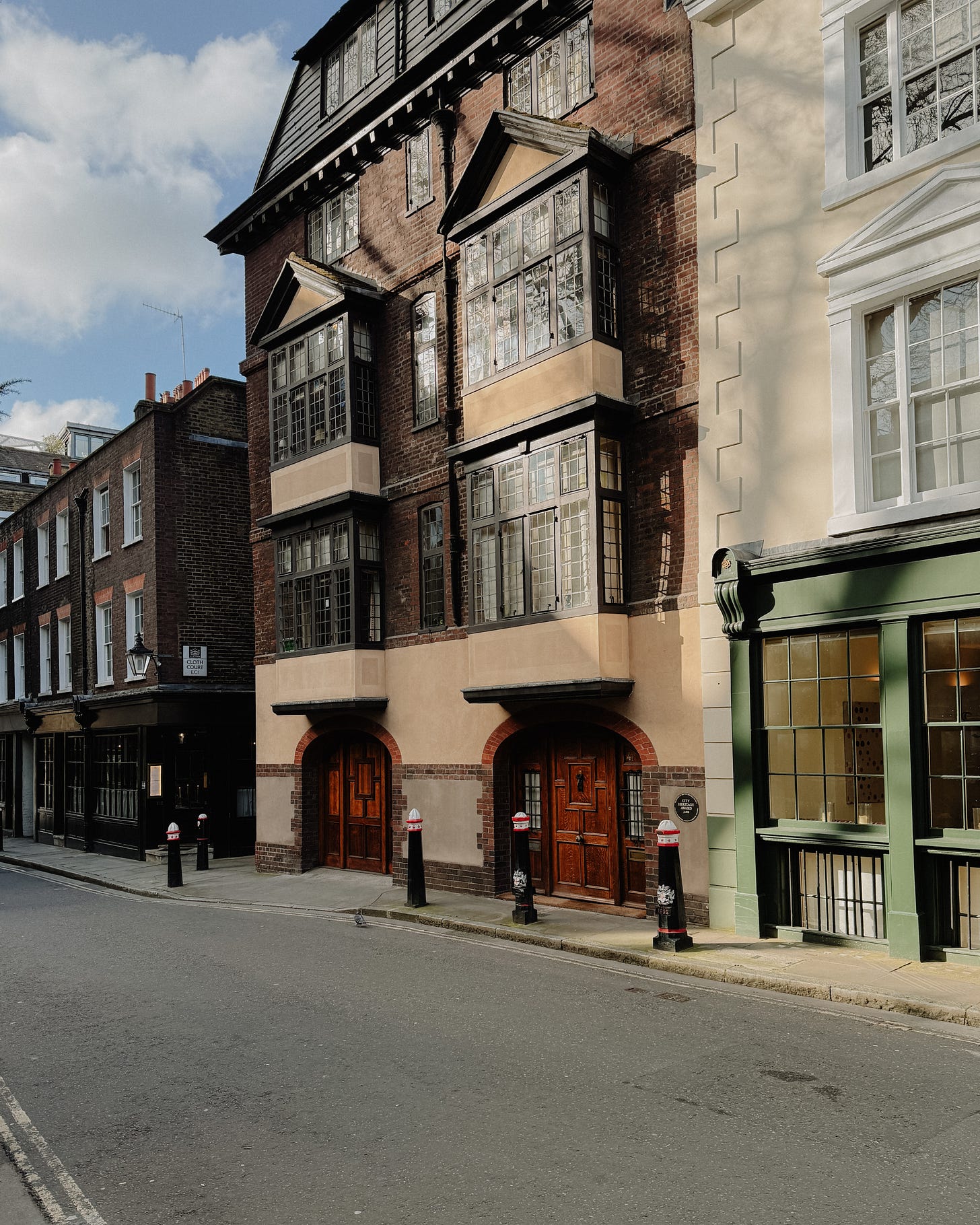 A few buildings along Cloth Fair retain genuine fragments of early construction. The best known is Numbers 41–42, often described as the oldest residential building in the City of London. Its timber frame dates from around 1614, and although much altered, it gives a sense of how London once looked before the brick Georgian terraces took over. Number 43, now owned by the Landmark Trust (who rent it out as a holiday let—wonderful option if you’re planning a visit to London!), is the former home of English poet laureate John Betjeman; its door is in Cloth Court off Cloth Fair.