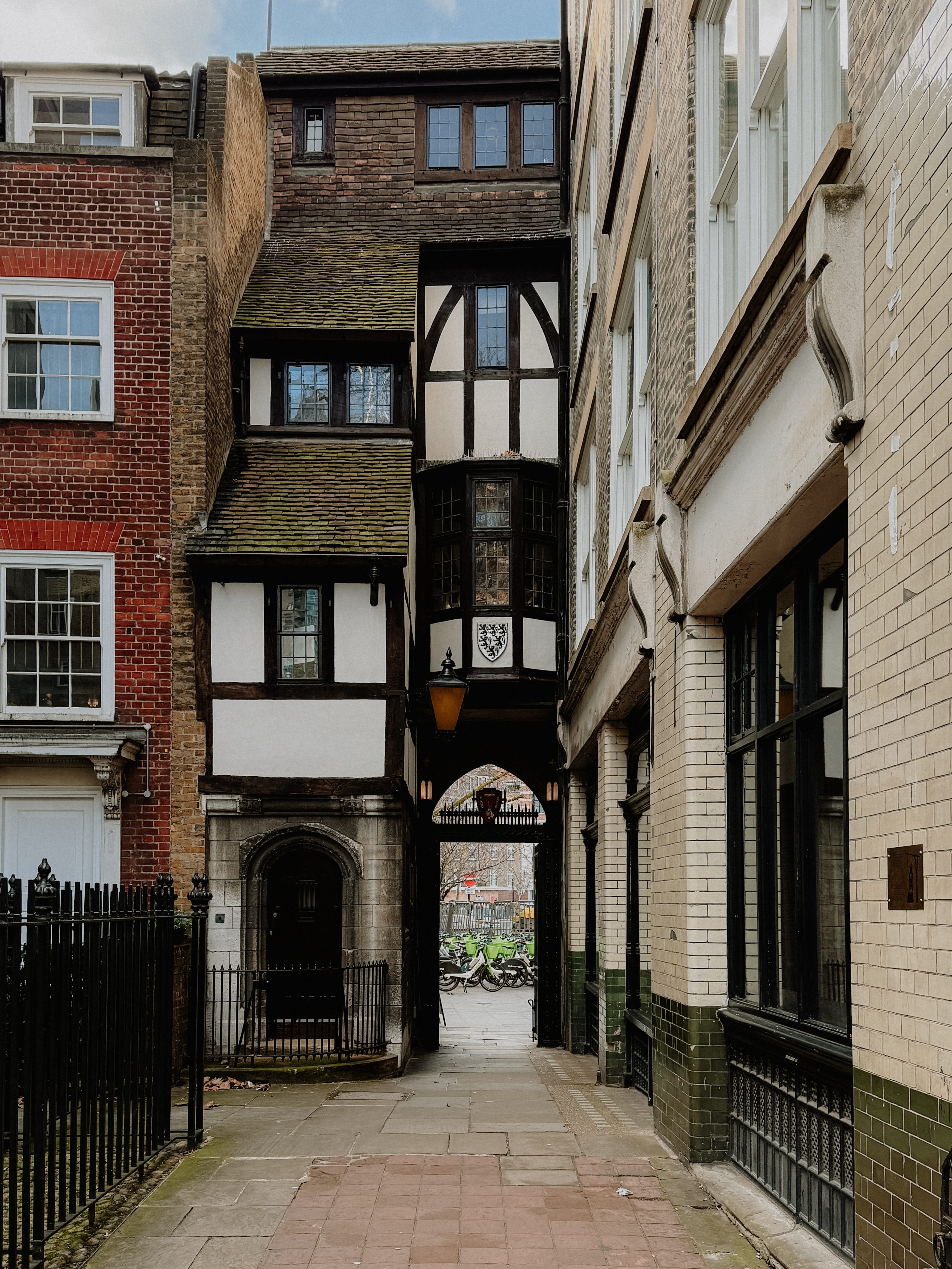 Around it, the street offers a kind of architectural cross-section of London’s development: narrow 17th-century houses rubbing shoulders with 18th-century brick fronts and Victorian warehouses. The upper storeys lean at improbable angles and the windowpanes are slightly uneven, as if time has pushed and pulled at them for centuries. It’s the sort of street that rewards slow walking and close looking, or perhaps a few minutes spent in the old churchyard of St Bartholomew-the-Great that looks out onto Cloth Fair and offers a peaceful spot to sit and soak in the atmosphere.